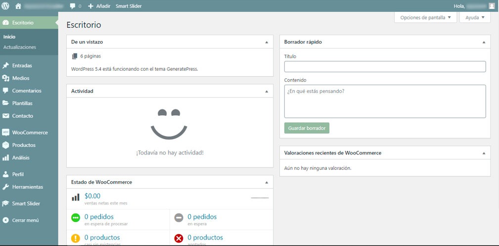2.- Una vez que ingresa a su área de backend tiene un aspecto visual como el siguiente: